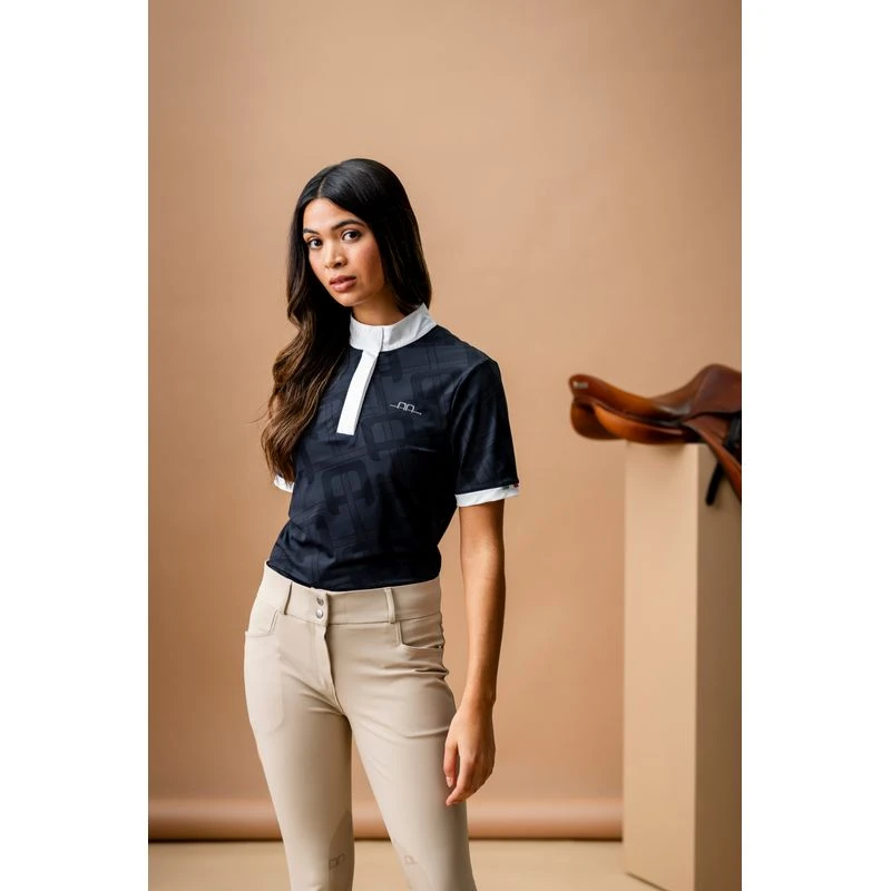 This shirt is made in a technical and functional four way stretch fabric with soft hand feel. The body of the shirt is an all over monogram pattern – choose how bold you want to go! It has a concealed zipper white placket and stand up white collar with magnetic closure. The cuffs on the short sleeve are also white. It is extremely breathable and moisture wicking. UPF 50+