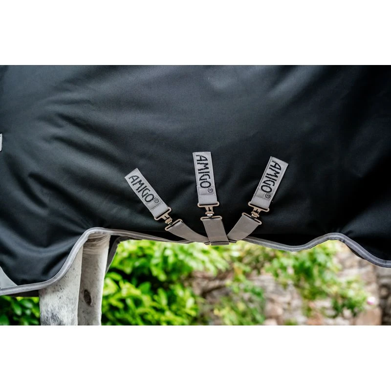 This original Wug Turnout offers a high cut neck design that is perfect for a narrow horse with high withers, giving a snug fit and eliminating wither pressure. Features include a V-Front closure for freedom of movement to graze, a strong waterproof and breathable 1200D polyester outer, front and rear leg arches to maintain freedom of movement while allowing the rug to stay secure, three surcingles offer additional belly coverage, reflective strips for increased visibility, and shine enhancing polyester lining.