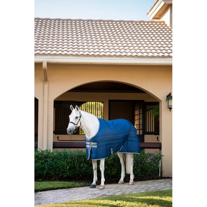 This heavy weight stable blanket includes 350g of fill with a 210D diamond ripstop polyester outer. The reinforced ripstop diamond weave helps ensure longevity while the shine-enhancing lining gives a silky-smooth feel on coats. Straight front with double closures, cross surcingles, and tail string for secure fit.