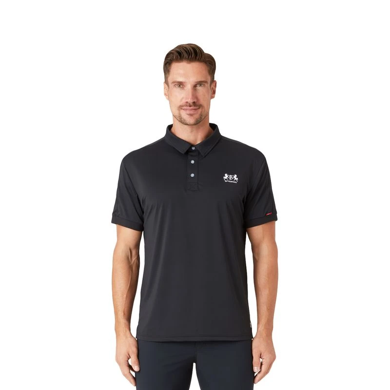 Our B Vertigo Flynn polo shirt is made from breathable piqu fabric that feels soft and cool against the skin. The monochrome shirt with delicate logo details on the chest and neck will easily fit into your riding wardrobe. Short sleeves and value closure make the shirt perfect for layering or wearing it on its own. Wear this polo shirt riding, in the stables or in your free time for a classy look.