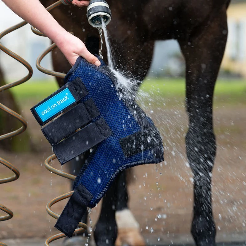 Cool on Track wraps are Quick Wraps in a classic model that molds to the horses lower legs and apply a cooling effect to the tendons.