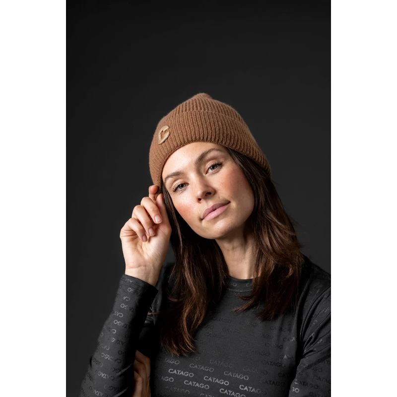 This ribbed knitted cap is lined with soft polyester fleece. It has a turned up brim and simple Catalog logo patch.