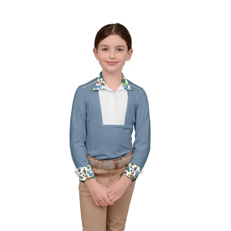 The SkyCool Liberty Show Shirt for girls ages 6 to 10 sure delivers! Made of the lightest weight 4-way stretch fabric with built in UPF 50 rated protection, and superior cooling technology that is incredibly breathable to keep skin dry.