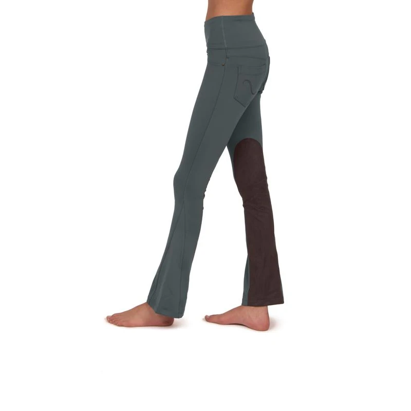 4-way stretch fabric for superior performance in any weather. Washable espresso color suede inseam chaps for optimal grip in the saddle and flattering for after-the-ride wear. Modern mid-rise waistband for extra coverage. No-chafe seams and a bootcut silhouette that extends you leg for a shapely, flattering look, youll reach for this tight everyday!