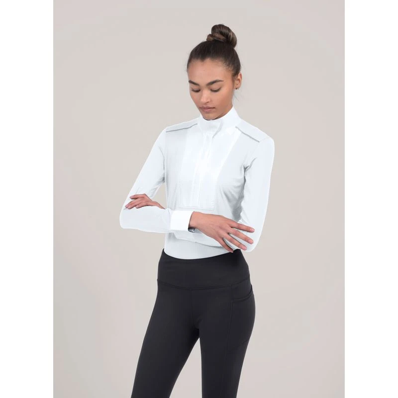 The trademarked SkyCool technology, proven to help the body manage its core temperature, keeps you comfortably cool and dry in warm, humid weather conditions, ideal for your next competition. SkyCool technology is infused in the fabric that works for the life of the shirt and never washes out. Blending classic style with superior performance features, the pull-over style long sleeve show shirt has perfectly placed mesh panels for immediate cooling, an inventive bib design that prevents gaping, and hidden snap collar and cuffs featuring patterns that show off your street to stable side when worn casually.