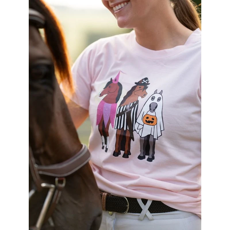 Made from 100% cotton, these tee shirts have a soft feel and a flattering fit. They have a classic cut with crew neck and short sleeves – perfect for tucking into breeches or jeans. The graphics are original drawings by Dapplebay founder, Leah.