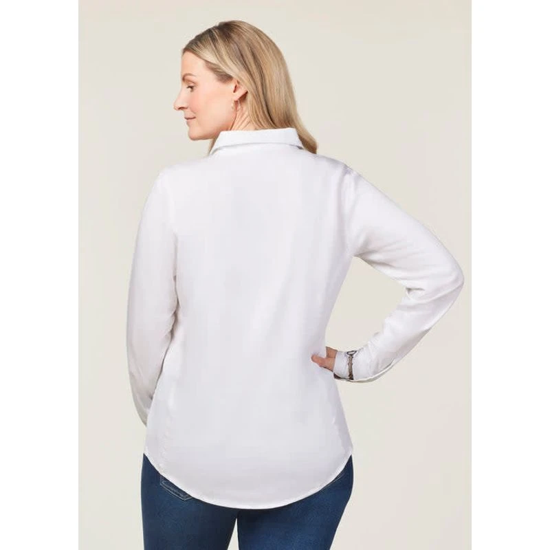 A crisp shirt tail hem exudes quiet confidence, while embroidered snaffle bits cuffs put your passion on display. Made from eco-conscious TENCEL, is one long-sleeve top you’ll reach for year-round.