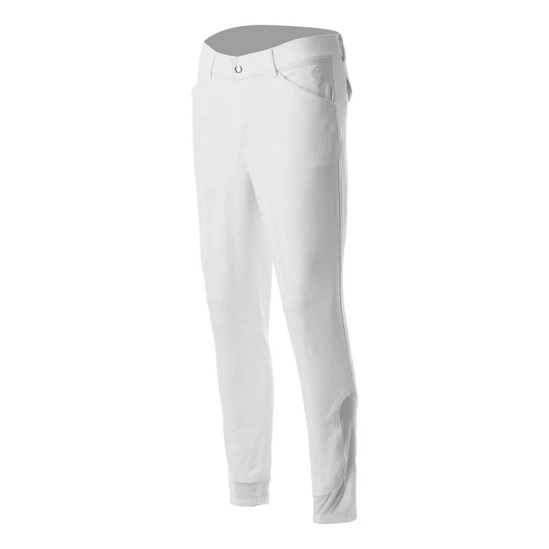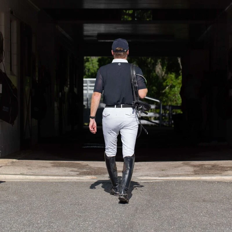The Equinavia Anders Men’s Knee Patch Breeches offer a technical, lightweight option designed for warm climates and enhanced performance. Crafted from breathable, high-retention Meryl fabric, these breeches provide superior comfort, durability, and easy-care maintenance. Functional design elements include deep front pockets for a phone, stylish back flap pockets with bottom detailing, and a secure single Gutos waist closure. Neutral silicone print knee patches ensure grip, while sock bottoms provide a smooth, streamlined fit under boots.