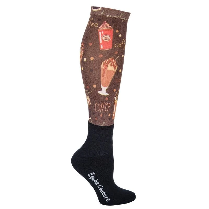 Show off your style in Equine Couture OTC Boot Socks! A plush foot and ankle provide cushion where it counts the most and a thin 4-way stretch calf is made to slide easily into your tall boots without uncomfortable bunching.