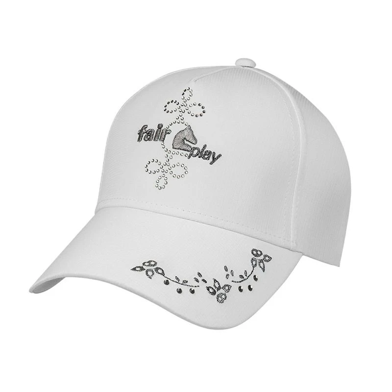 The Fair Play Antila Fleur Baseball Cap a sparkly Fair Play logo on the front, and floral embroidery on the bill. The back has a touchtape closure and a ponytail hole.