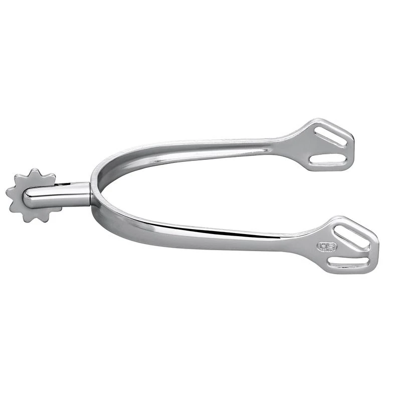 This spur features a 30mm round end neck with a 9 point rowel. It has unisex sizing that will fit both men and women.