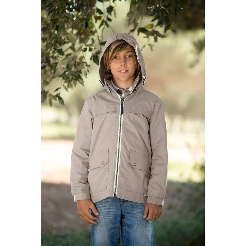 This cotton nylon blend jacket is windproof and showerproof, with a equestrian print lining. The removable hood makes this a wear in all weather conditions.