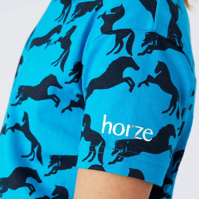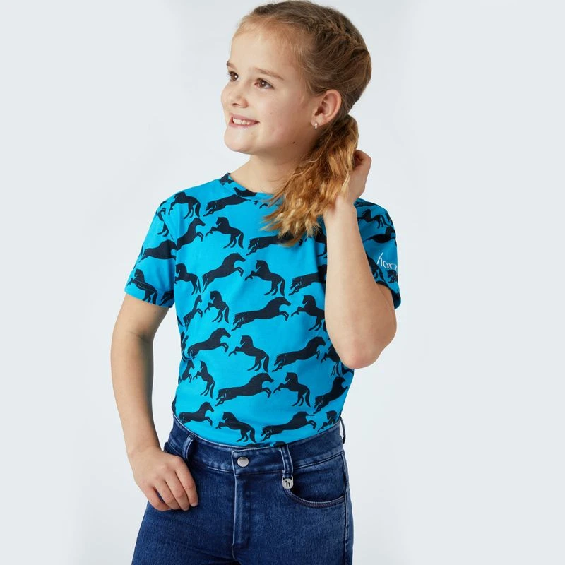 The Horze Micky shirt is perfect for young riders. Soft material and a simple cut make it comfortable for everyday riding or days in the stables. The allover horse print adds fun to little riders’ wardrobes. It can easily be combined with their favorite breeches and jackets.