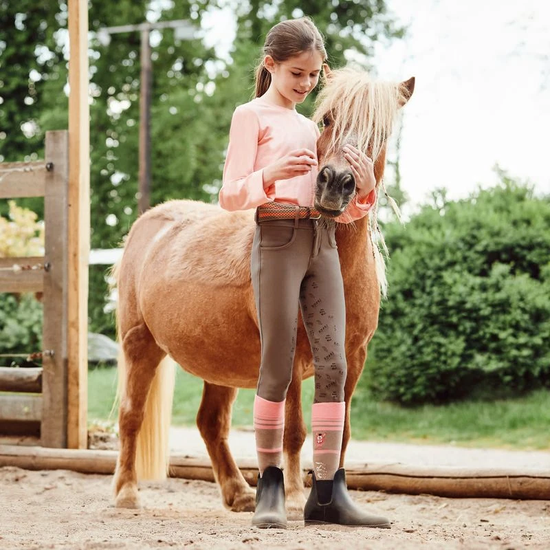 Horze Morgan Full Seat Breeches for kids are made with grippy silicone that keeps little riders safely in the saddle.