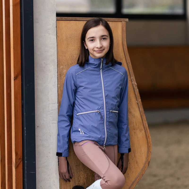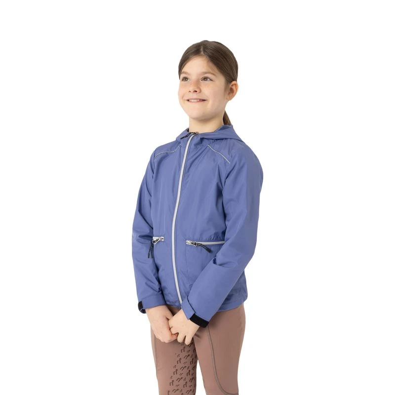 This lightweight jacket is windproof and water repellent. It has a soft jersey lining, zip pockets and reflective piping. The two way zipper and adjustable hem is perfect for the saddle
