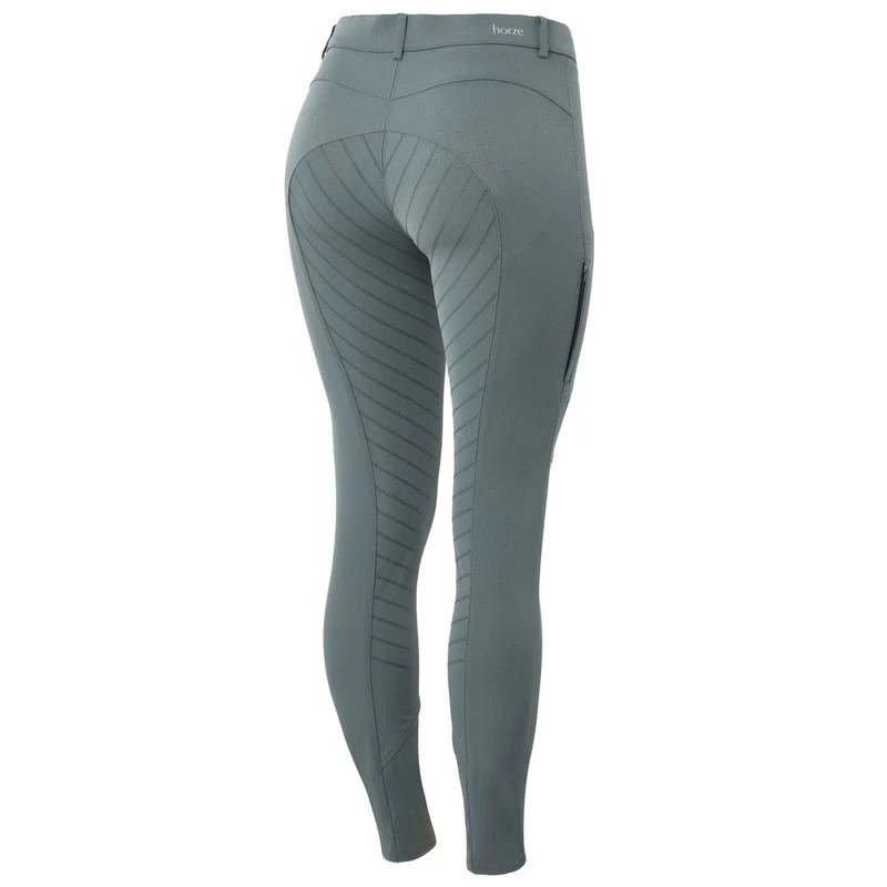 Horze Anna breeches are not only pretty, but also practical. The zipper pocket on the thigh offers space for your phone. The full seat is made from silicone to keep you safely in the saddle. The back side is decorated with flattering seams for a pretty shape. Small rose gold details add a nice touch.