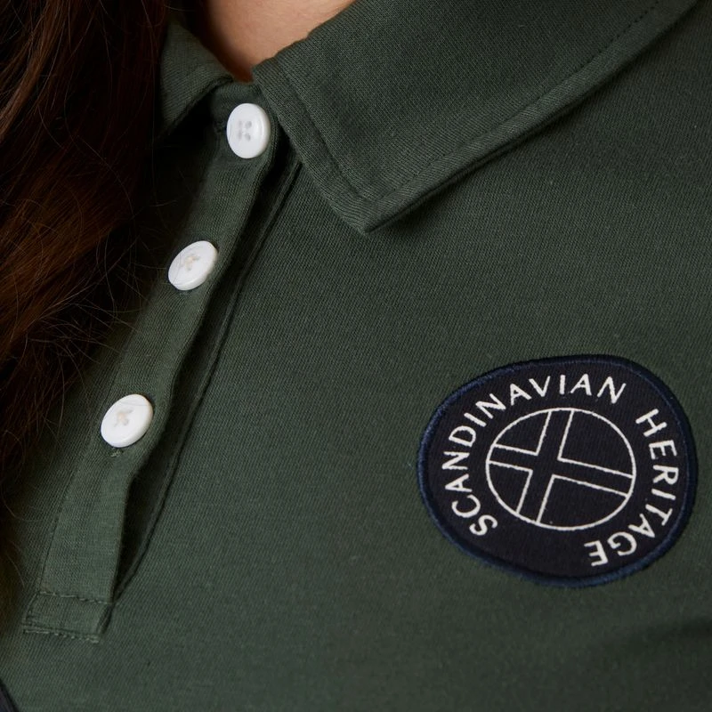 The Horze Jessie t-shirt is made from breathable material that is perfect for your daily rides. The sporty design with collar and contrasting stripe easily matches your riding wardrobe. Press buttons at the placket provide additional ventilation when needed. The embroidery on the chest looks timeless and chic. Wear this jersey shirt riding, in the stables or in your free time. It can easily be combined with breeches, tights or jeans.