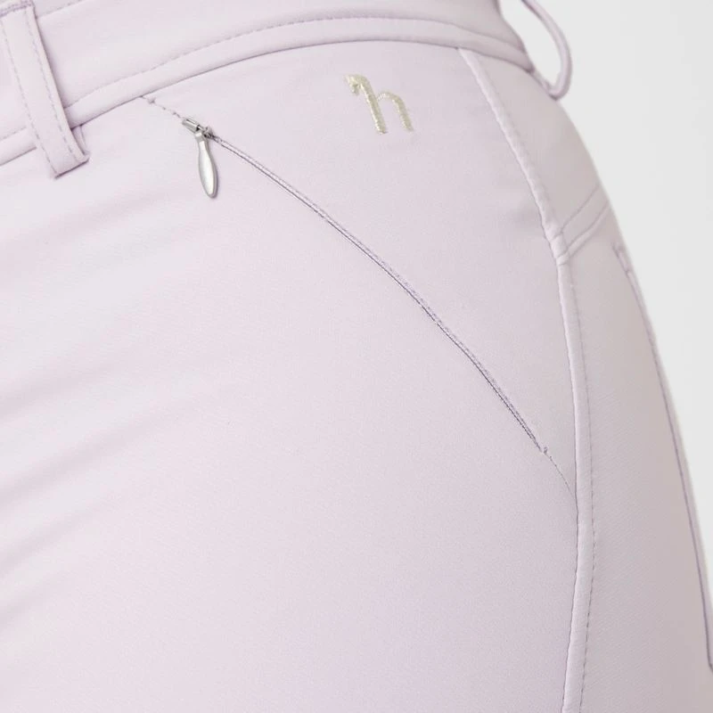 Made from soft, stretchy material. Front pockets with zippers keep your phone safe and embroidered back pockets with silver leaves match the floral silicone full seat. Muted colors fit your riding wardrobe perfectly.