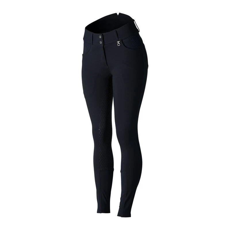 The Horze Limited Edition Eva breeches feature a flattering high waist and a practical silicone full seat that ensures good grip in the saddle. The pockets and back belt loops are covered with the same delicate print as the full seat, giving these breeches a special, sophisticated look. A zipper and two buttons close safely, and elastic leg bottoms fit comfortable underneath your favourite boots. The small metal pendant on the front belt loop is a lovely subtle feature. Muted colours match your riding wardrobe perfectly.