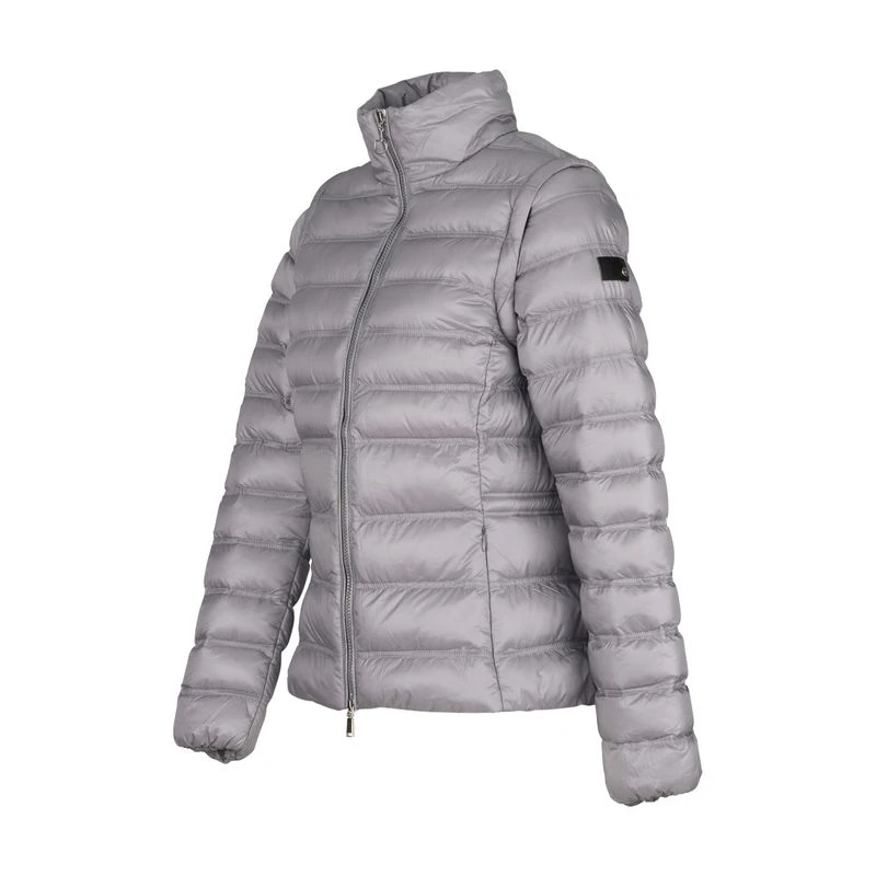 The new Natalie jacket is equipped with removable sleeves that turn it into a vest when you need it. It is lightweight yet warmly padded. The water repellent, windproof fabric protects you from rain and cold. Silver zippers offer a classy look. Adjust the waist for the perfect fit, and store your phone and keys in the pockets.
