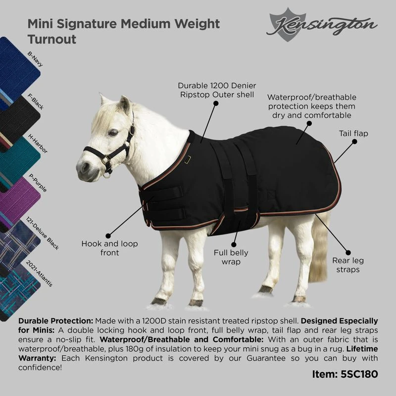 Protect your mini horse with the waterproof and breathable Signature Mini Medium Weight Turnout.