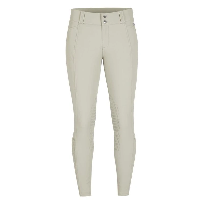 Thoughtfully placed, figure flattering seams, four-way stretch integrity, and Kerrit Sticks Silicone knee patches combine for a fluid, polished riding pant that helps women look and ride their best. This updated style now features quick-access front slash pockets, tailored front fly with two-snap closure, 2-inch comfort waistband, belt loops, and Euro seat styling.