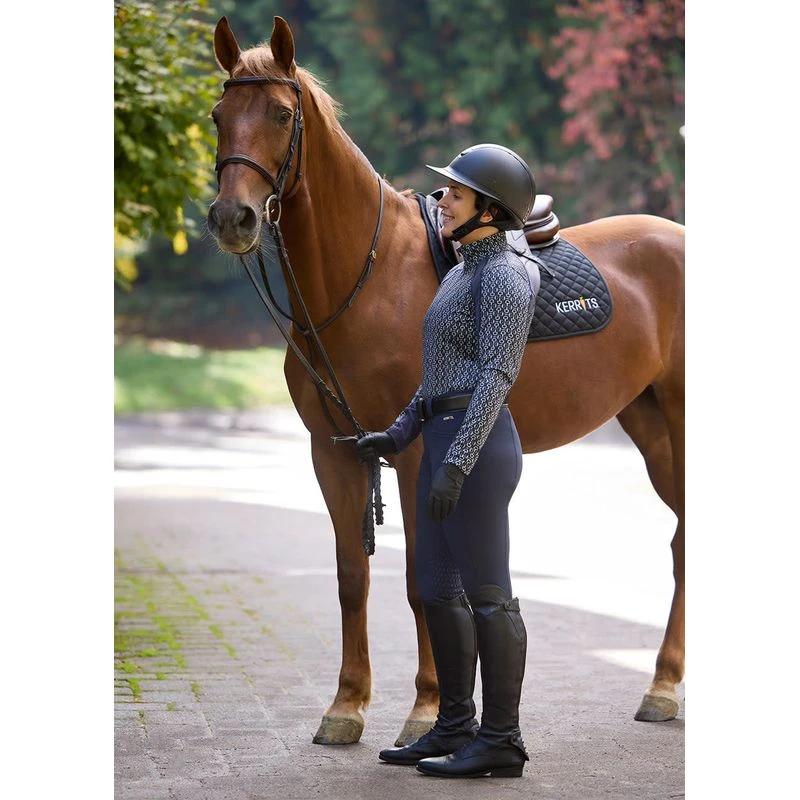 Designed with exclusive equestrian prints that celebrate the spirit of riding, this long sleeve fleece riding top delivers lightweight warmth in a four-way stretch knit for a performance-driven fit