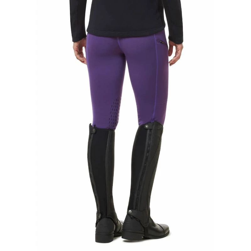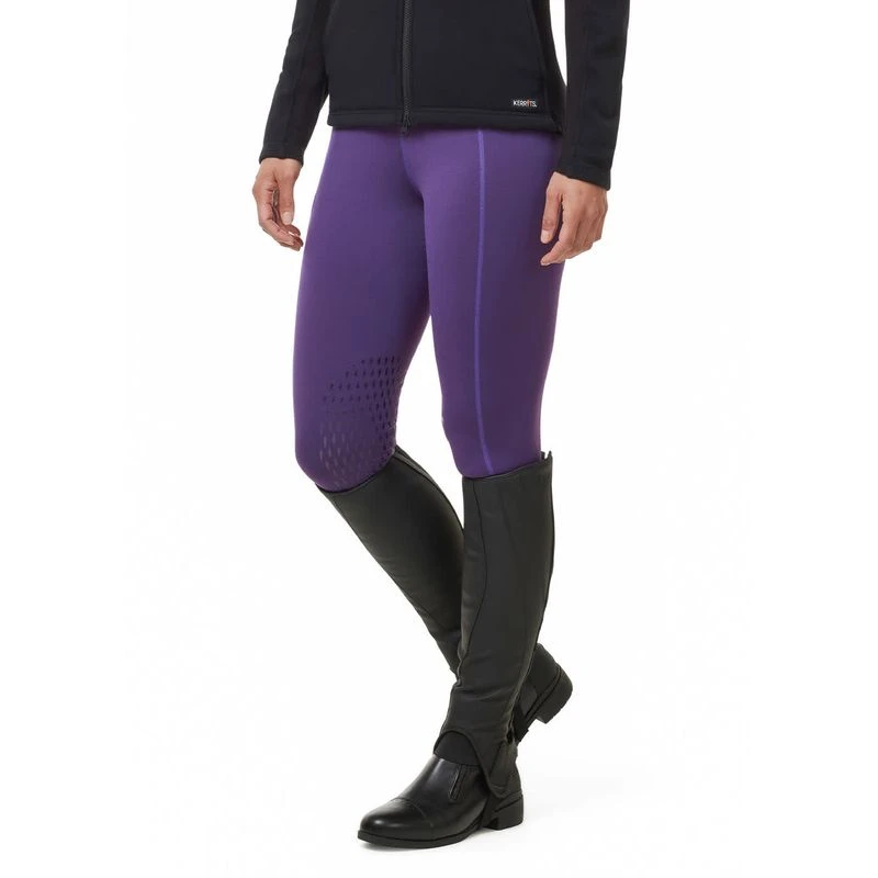 Ideal insulators for frosty winter rides and barn chores, the brushed fleece Polartec Power Stretch interior of these cold weather tights provides snuggly warmth while the matte exterior sheds hay, shavings, and horsehair. Kerrit Sticks_ Silicone knee patches add security without restriction for comfy performance. Sporty waistband in a Klassic rise with belt loops softly conforms while the zip pocket holds easy access treats.