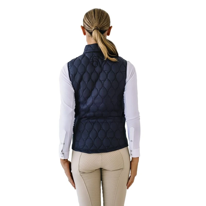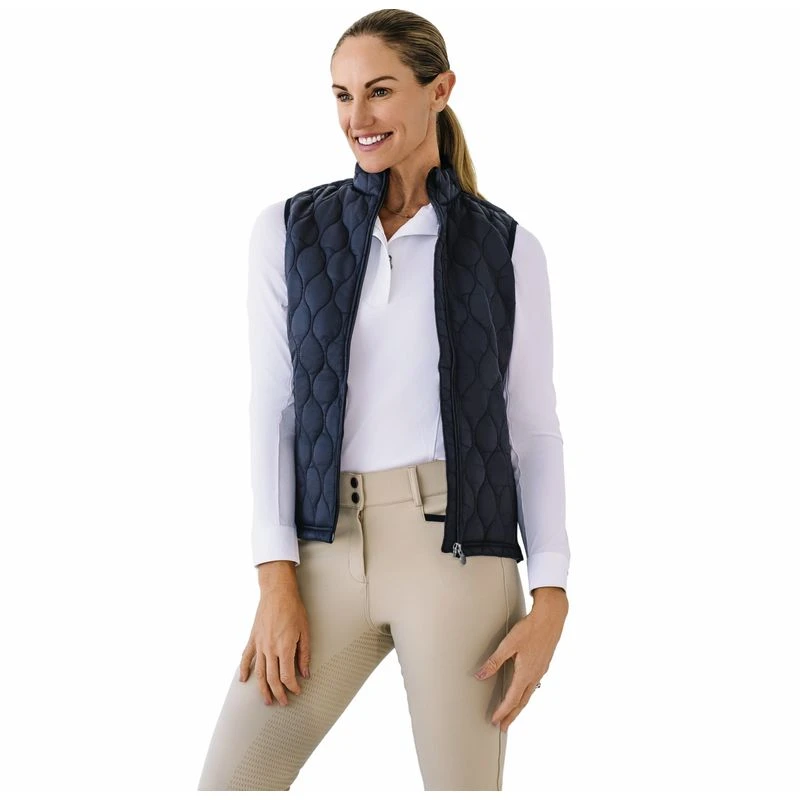 The Ovation Quilt Hybrid Puffer Vest features a classic quilt pattern on the front and back. It has stretch panels on the side so it never feels binding in the saddle. The back hem curves down for full coverage.