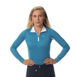 Horze Women’s Trista Long Sleeve Technical Sun Shirt – Paradise Blue/White