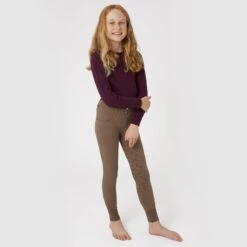 Horze Kids’ Marlee Pull-on Full Seat Tights W/Contrast Stitching – Aqua Blue