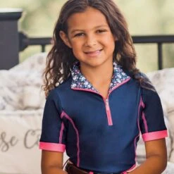 Romfh Kids’ Chill Factor Short Sleeve Sun Shirt – Navy/Lilly Bits Juicy Pink