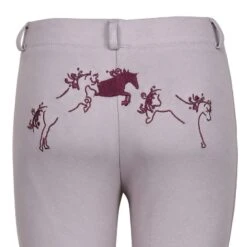 TuffRider Kids’ Whimsical Horse Embroidered Pull-On Jodhpurs – Lilac Gray