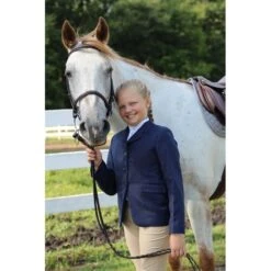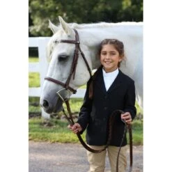 TuffRider Men’s Dennison Short Sleeve Show Shirt – White/EC Navy/EC Red