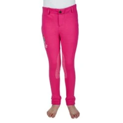 TuffRider Kids’ Thelwell Sweep Embroidered Pull-On Knee Patch Jods – Hot Pink
