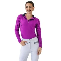 Romfh Women’s 1/4 Zip Long Sleeve Solid Sun Shirt – Rose Violet