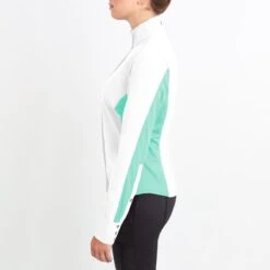 Irideon Women’s Athena Long Sleeve Show Shirt – Bright White/Island Green