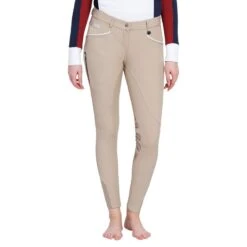 Equine Couture Women’s Sportif Natasha Knee Patch Breeches – Lt Tan/Black Stitching