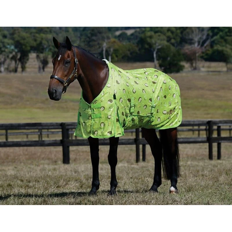 This fly sheet features a soft polyester mesh outer with dual front buckles for ease of use with an adjustable belly band for greater coverage. The addition of shoulder gussets offers freedom of movement, while a tail cord helps to keep the sheet in place even through rough play. This sheet also features up to 70% UV sun protection.