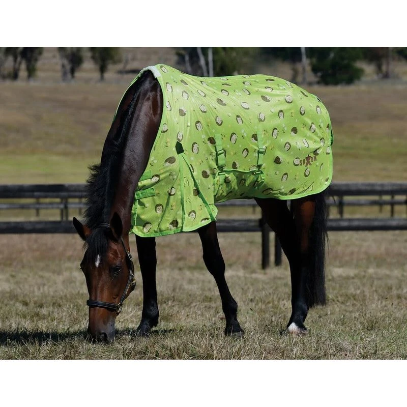 Protect your horse from biting insects with the Saxon Mesh Sheet with Belly Wrap and Standard Neck.