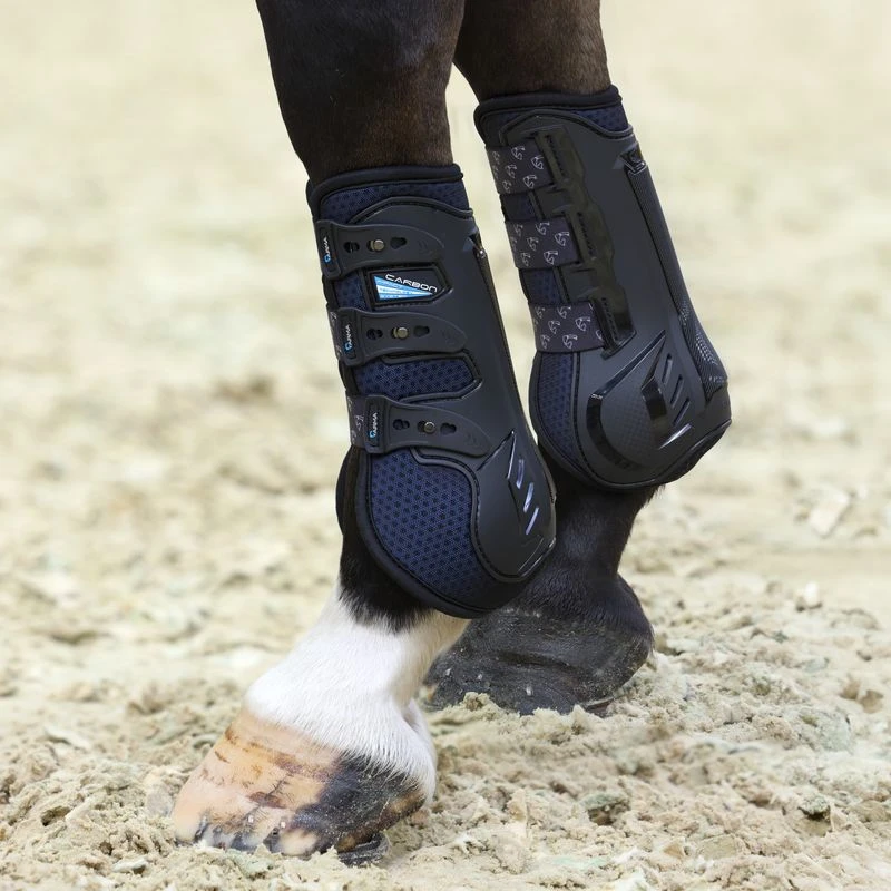 The triple impact support system features a strong TPU outer, an impact absorbing vented neoprene center, and breathable mesh lining. Perforations and mesh increase airflow around the tendons to reduce heat buildup offering max ventilation and quick drying properties. Flex Fit with an ergonomically shaped TPU shell that defends against impact while the flexible structure moves with the horse to facilitate peak athleticism. Elasticated straps with pin fastening for a secure, fast fit.