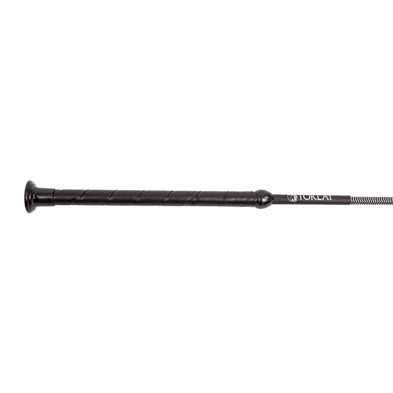 This is a 26″ crop with a faux leather look handle, solid color shaft and slender clapper.