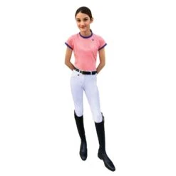 Tredsteps Cool Touch nylon pique fabric has a wonderfully cool feel on your skin while also protecting you from harmful rays and unpleasant odors. Featuring Birds Eye Mesh under sleeves, crisp cotton wrap collars and cuffs, stylish snap buttons and a choice of three trim color print options this is altogether a wonderful show shirt which you can wear with confidence in the or out of the show ring.