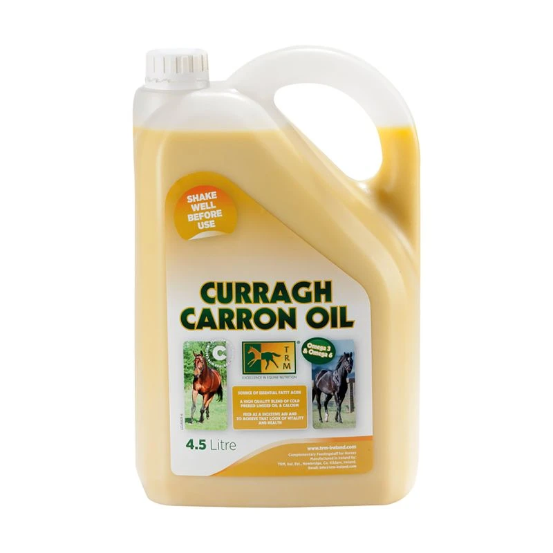 CURRAGH CARRON OIL is a complementary feed for horses, which provides a source of essential fatty acids from a high quality blend of cold pressed linseed oil & calcium. Feed as a digestive aid and to achieve that look of vitality and health. Composition: Flaxseed oil, Calcium hydroxide, Magnesium sulfate.