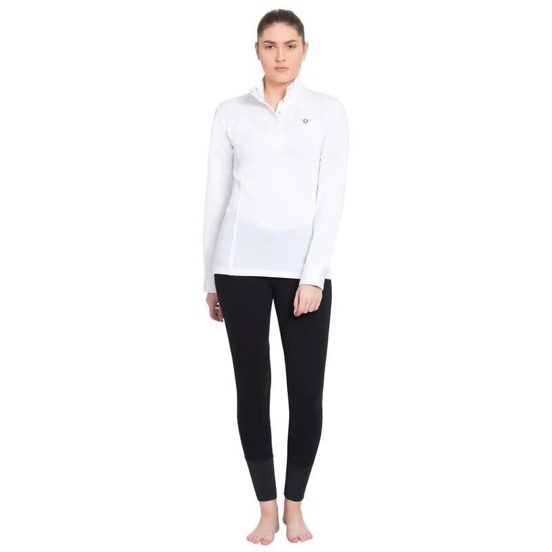 The TuffRider Ladies Kirby Kwik Dry Long Sleeve Show Shirt is perfect for hot summer show days with its moisture wicking fabric.