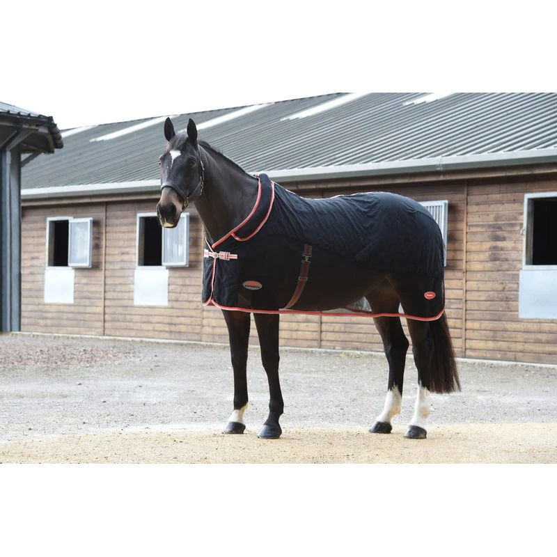 The Therapy-Tec has ceramic fabric technology to reflect the horses own body heat over the shoulders, back, neck and quarters. Lightweight, breathable and highly wickable cooler with mesh covered Cool Dry fleece upper and a mesh lower for airflow. Features includes a hideaway neck pocket with a touch tape closure to easily fold the neck portion away to use as a Standard Neck style, boa fleece wither relief panel, single adjustable buckle front closure, single hidden adjustable surcingle and tail cord.